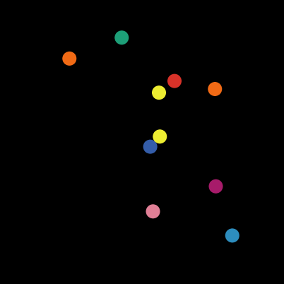 Gravity is the best example of such a force. You can watch the particles form elliptic orbits around the mouse pointer, or watch them slingshot around it, similar to how a comet streaks past our sun. Think of the individual objects as planets or other solar bodies, and see how they react to various masses that move or remain stationary.