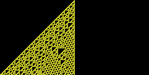 For example, if we have a Rule 110 CA, and the current cell is yellow and its left neighbor is black and its right neighbor is black, the cell below it is painted yellow.