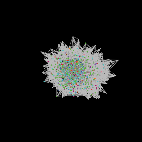 The model starts with "num-infected-init" (see slider) nodes which can have any of the "num-opinions" (see slider) opinions. At each step, the opinions might spread to any of their neighbors along a WOM dynamics, (word of mouth), by which each node can adopt the opinion of its social neighbors, or according to WEB dynamics (web search engine), by which a node adopts an opinion according to its likelihood to appear in a search engine query.