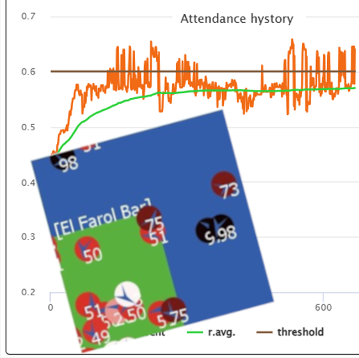Rand, W., Wilensky, U. (2007). NetLogo El Farol Extension 3 model. http://ccl.northwestern.edu/netlogo/models/ElFarolExtension3. Center for Connected Learning and Computer-Based Modeling, Northwestern Institute on Complex Systems, Northwestern University, Evanston, IL.