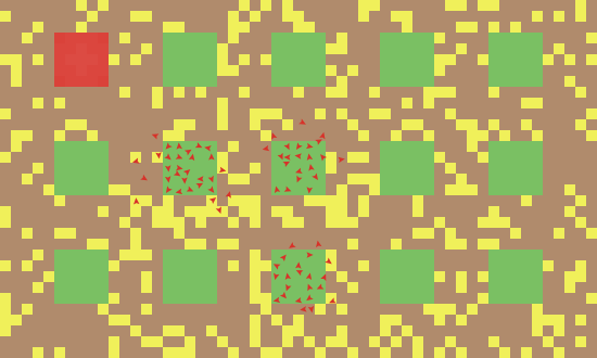 - "Cuadricula regular": Se divide el paisaje haciendo cuadrículas o rectángulos, dependiendo el valor dado, entre habitat y matriz 1 y 2, éstas últimas fragmentándose.